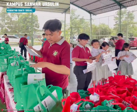 Momen ini tidak sekadar menjadi agenda tahunan, melainkan sebagai wujud konkret kepedulian sosial yang berakar kuat pada nilai pendidikan dan spiritualitas Ursulin ke dalam realitas kehidupan sosial yang lebih luas. Seluruh rangkaian kegiatan melatih dan membentuk pribadi anak untuk memiliki rasa empati dan tanggung jawab sosial. Kegiatan ini merupakan agenda Kampus Santa Maria Ursulin Sidoarjo yang melibatkan para perwakilan siswa dari jenjang KB-TK, SD, hingga SMP. Para warga sekitar yang kurang mampu tampak bersemangat, antusias, dan tertib saat menerima paket sembako.