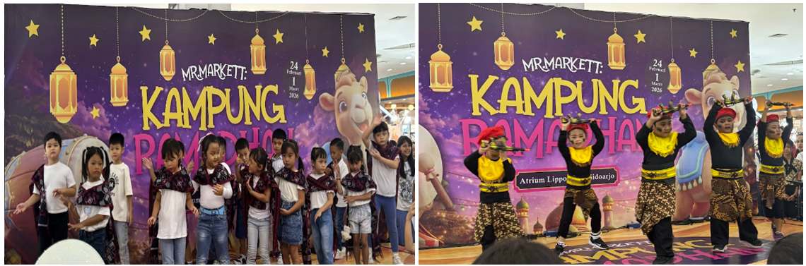 Sidoarjo, Kampus Ursulin – Sanmaris – Sabtu, 28 Februari 2026, para murid KB-TK Santa Maria II Sidoarjo mengikuti semarak pentas seni "Mr. Market Kampung Ramadhan 2026" di Lippo Plaza Sidoarjo. Acara ini bertujuan untuk memberikan kesempatan kepada peserta didik dalam mengekspresikan seni dan bakat, seperti menari. Penampilan tersebut sekaligus melatih kepercayaan diri siswa untuk tampil di hadapan khalayak umum.