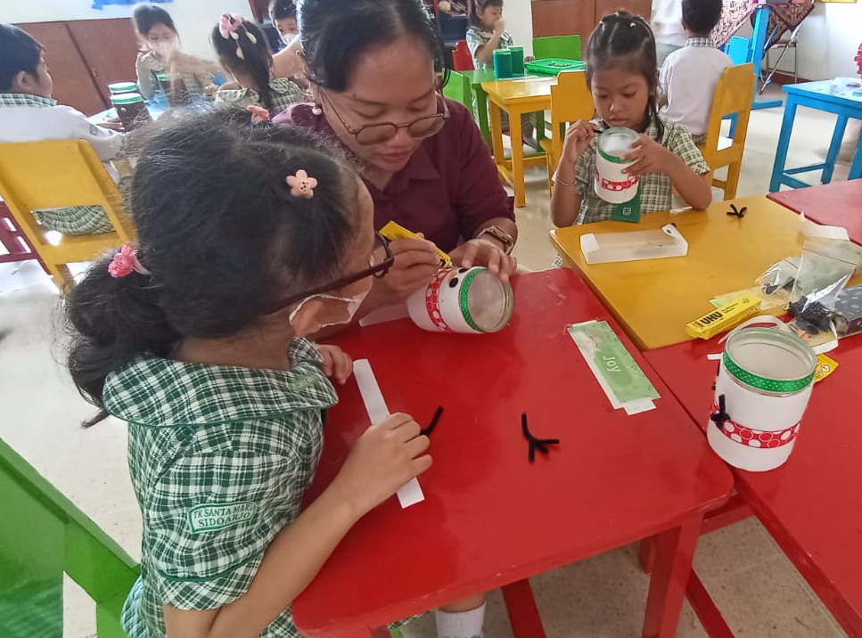 Anak-anak dengan antusias menghias toples menjadi berbagai bentuk khas Natal, seperti pohon Natal, snowman (manusia salju), dan rusa Natal. Dengan bimbingan guru dan dukungan orang tua koordinator kelas, anak-anak bebas mengekspresikan kreativitas mereka melalui warna, hiasan, dan detail sederhana yang menarik.