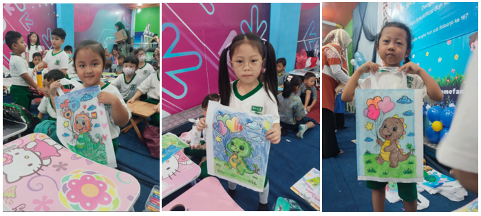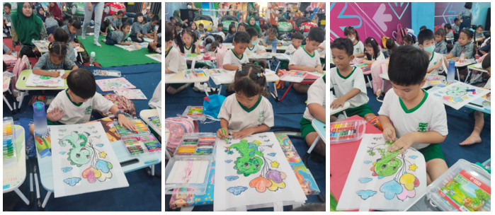 Sidoarjo, Kampus Ursulin – Sanmaris Rabu, 28 Januari 2026 – Sebanyak kurang lebih 81 murid dari TK Santa Maria Ursulin Sidoarjo dan TK DWP Gebang memadati Game Fantasia, Lippo Plaza Sidoarjo, hari ini untuk mengikuti lomba kreativitas mewarnai tas spunbond. Kegiatan yang diselenggarakan oleh Gugus 04 IGTKI Kecamatan Sidoarjo bekerja sama dengan Game Fantasia ini berlangsung selama tiga hari, mulai 27 hingga 29 Januari 2026, dengan jadwal dua lembaga sekolah setiap harinya.